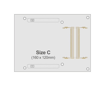 The COM-HPC specification defines three client modules: Size A (95mm x 120mm), Size B (120mm x 120mm), and Size C (160mm x 120mm). The largest client module, Size C, offers up to four on-board SO-DIMM sockets and a single 12-volt power supply that can deliver up to 251 watts. It also features 49x lanes of PCIe Gen5 in total. These client modules are designed for high-end embedded client products, needing one or more displays, a full set of low, medium, and very high bandwidth I/O for fast data transfer, powerful CPUs, and modest size.